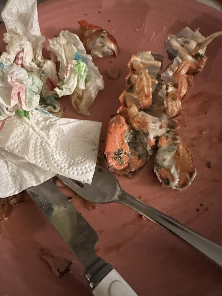 The lobster tail I just baked with a pat of garlic butter. Wrapped in tinfoil in the oven at 375 for 5 minutes!