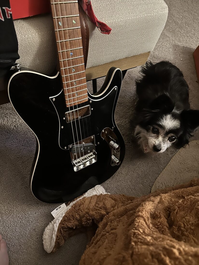 She was a fender fan! Nope I told her to cuddle up next to her fav! ESP, fender, godin, Ibanez!