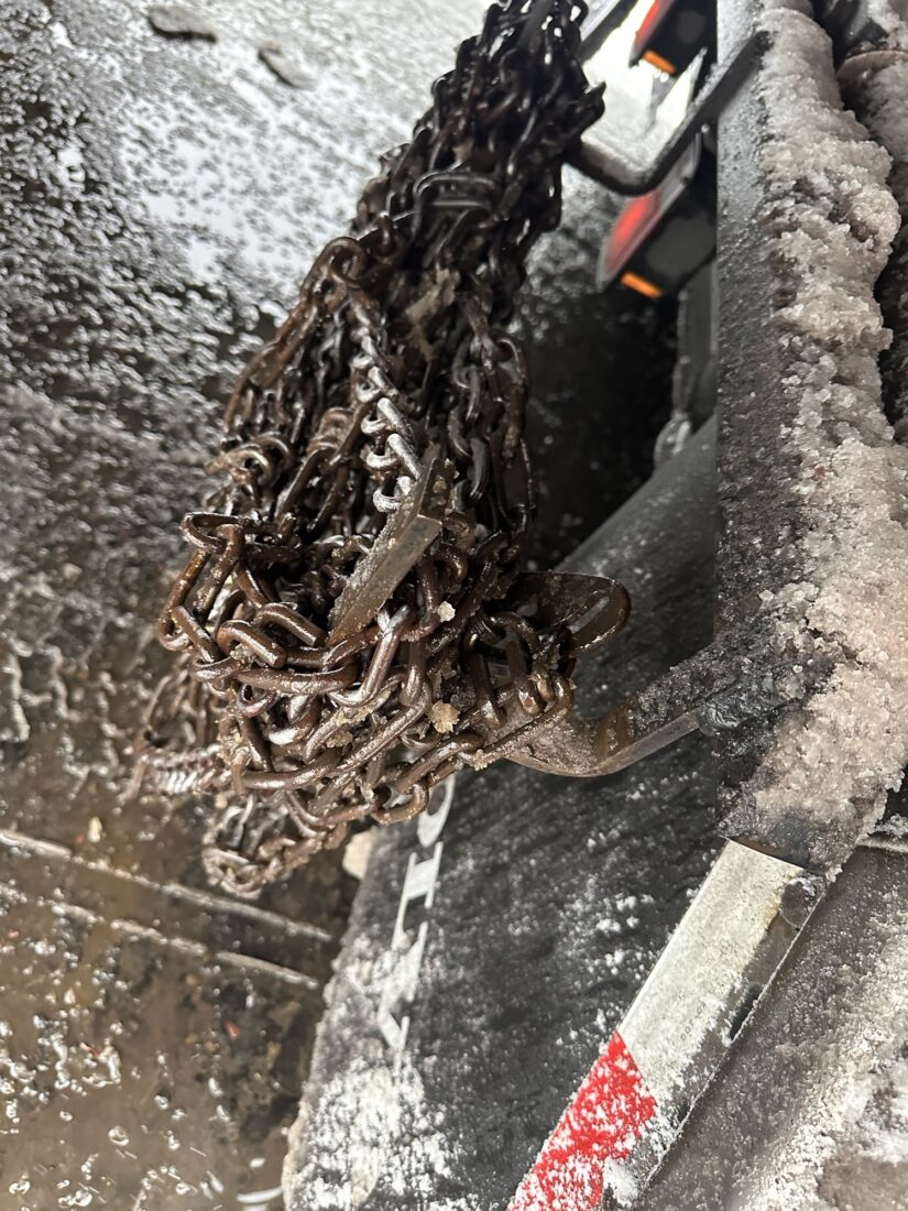 FYI, I alternate my drag chains! Something I learned driving the winds of Wyoming and the Midwest. I found I have much better slide control if I have a chain on each axle! Aka, a rail on the left front with one on the right rear trailer axles!
