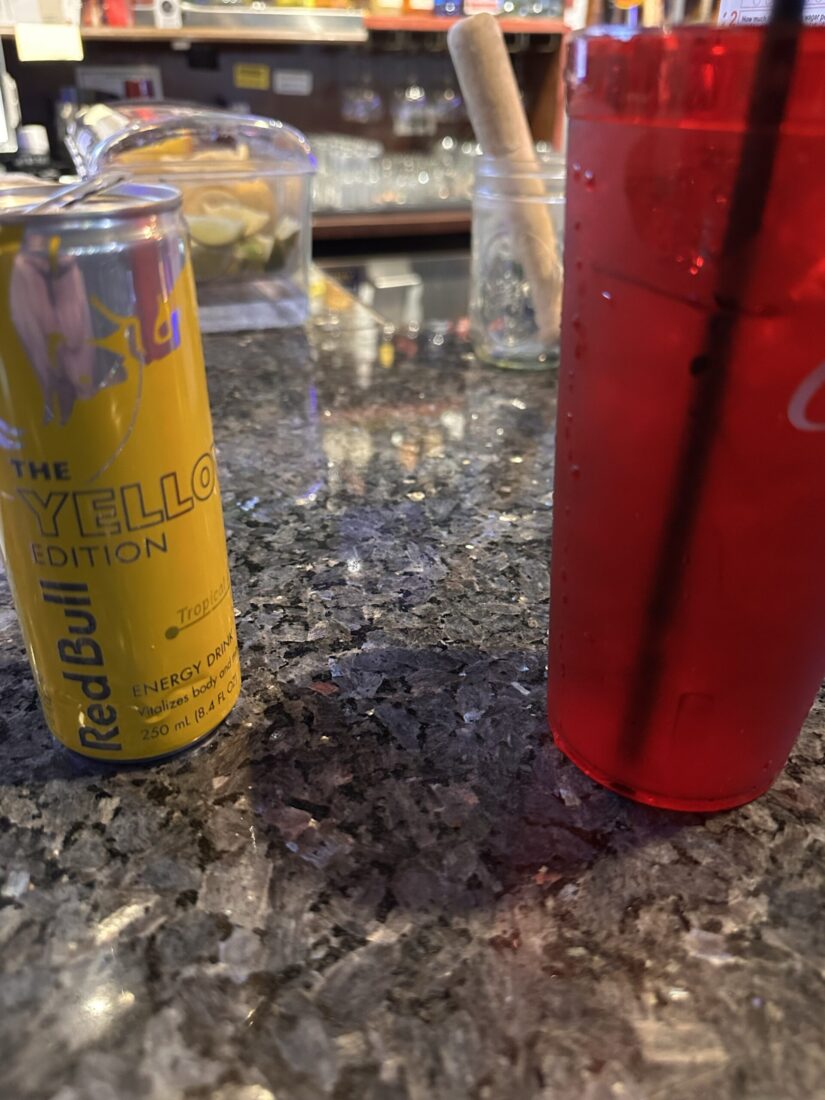 I think the bartender is trying to get me drunk! I ordered a crown and Red Bull! It was 7/8th crown and 1/8th Red Bull! So while I sit here waiting for the buzz to wear off!