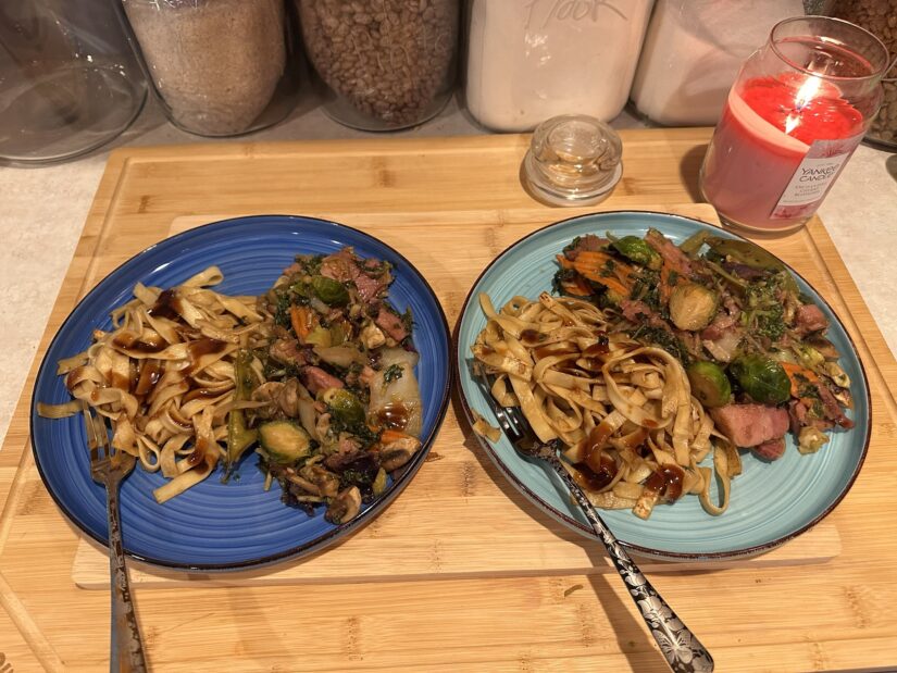 If you ask me, my teriyaki stir fry with pan fried, pan mee noodles turned out damn good!