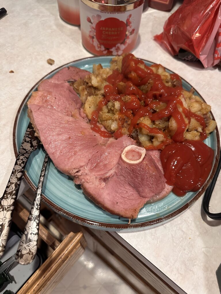 Ladies! Hope this will suffice? I only defrosted 1 ham steak each last night…..