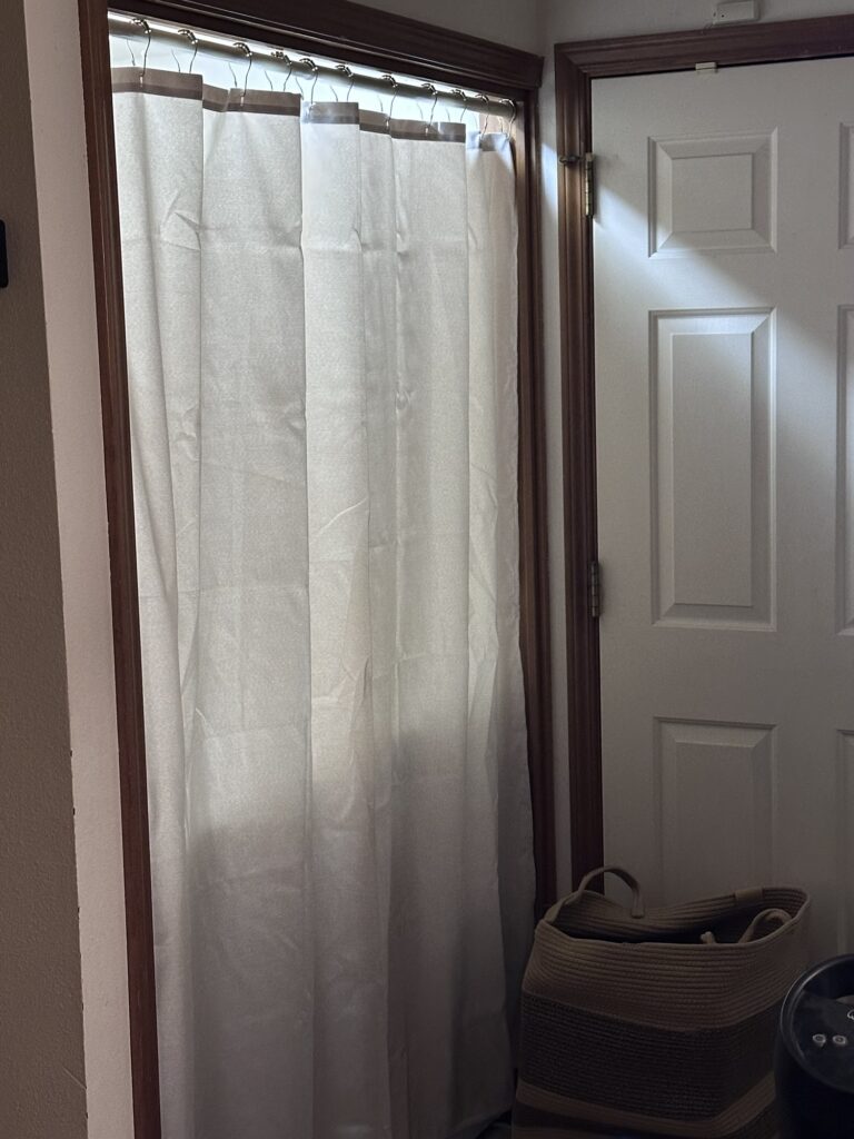 To the point of this post! lol, after finding out the laundry room curtain was a bed sheet. I went and ordered an actual bathroom style curtain last night!