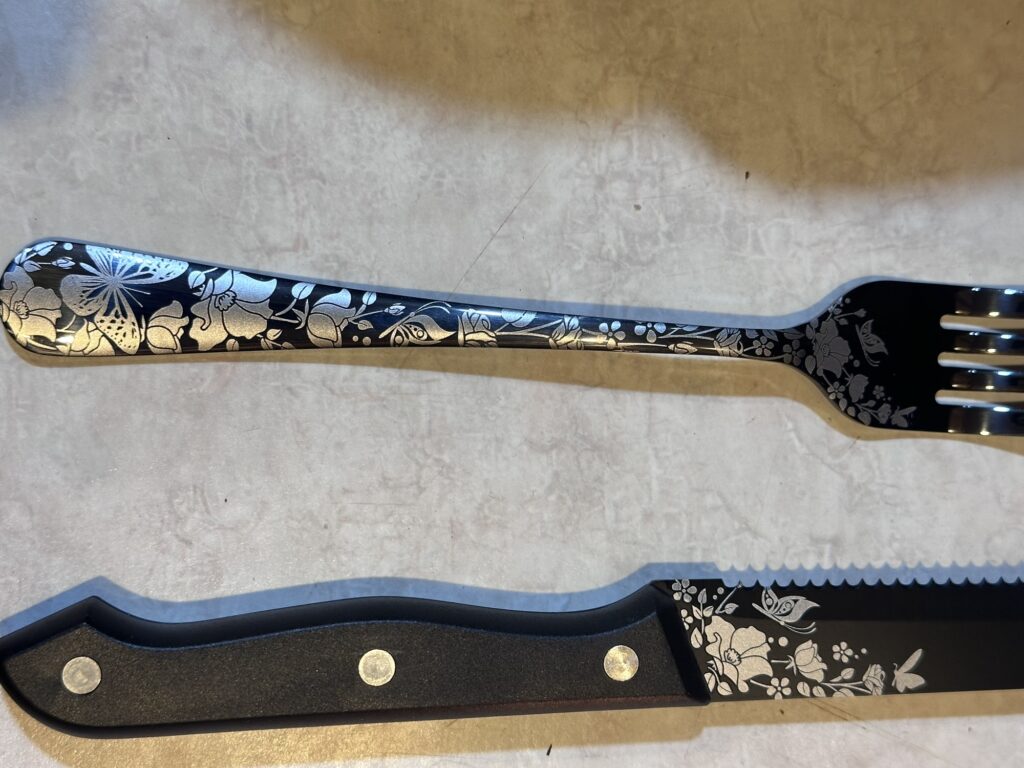 The coolest pieces I picked up were the silverware! I really questioned my decision as fancy laser engraved silverware just sounds cheap and low rent!