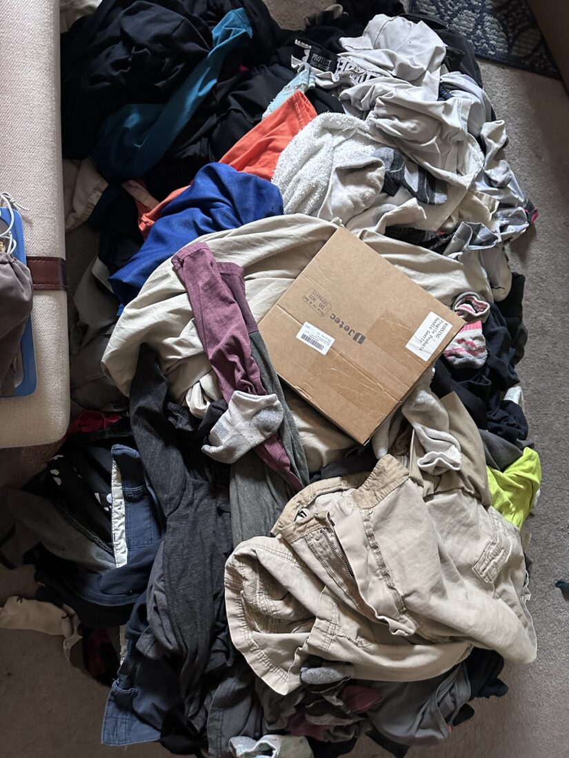 Now to find someone who can help me go through these 5 bags of clothes out of the truck! I need folders and sorters! As a goodwill will be getting a shitload of clothes donations from me! If it don’t fit, you must acquit!