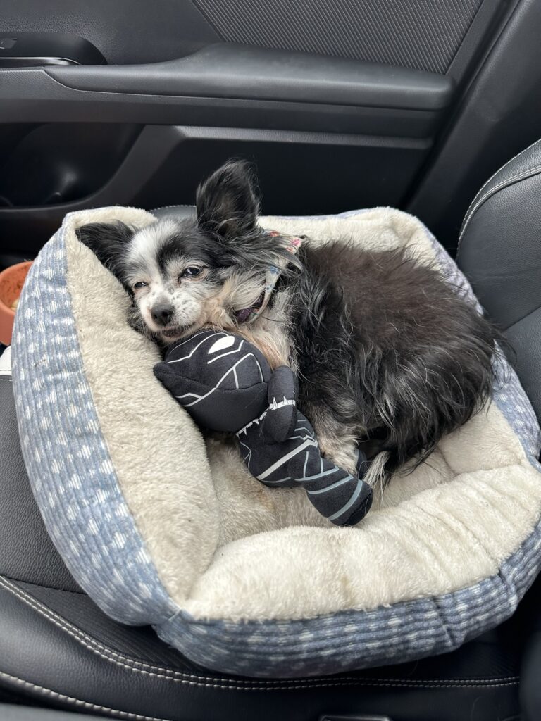 Finally has accepted the black panther as a real toy in which to sleep on! Only took a month…..