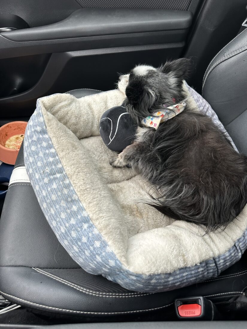Finally has accepted the black panther as a real toy in which to sleep on! Only took a month…..