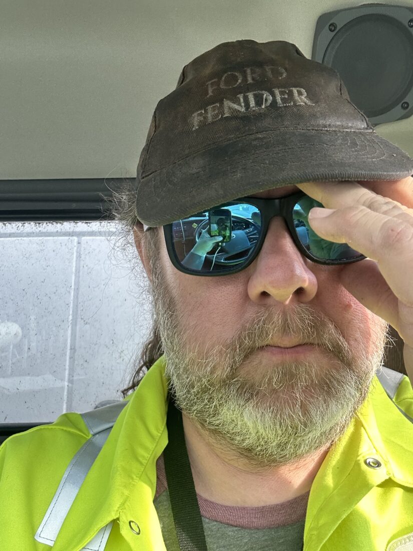 Lady, I’m thinking polyester fluorescent safety green really doesn’t bring out my blue eyes like you say!