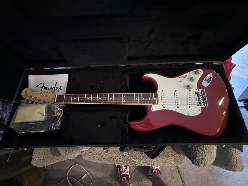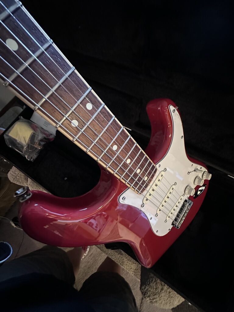 This is my fav strat! American channel bound! With an unusual set up, dual voice active pick ups!