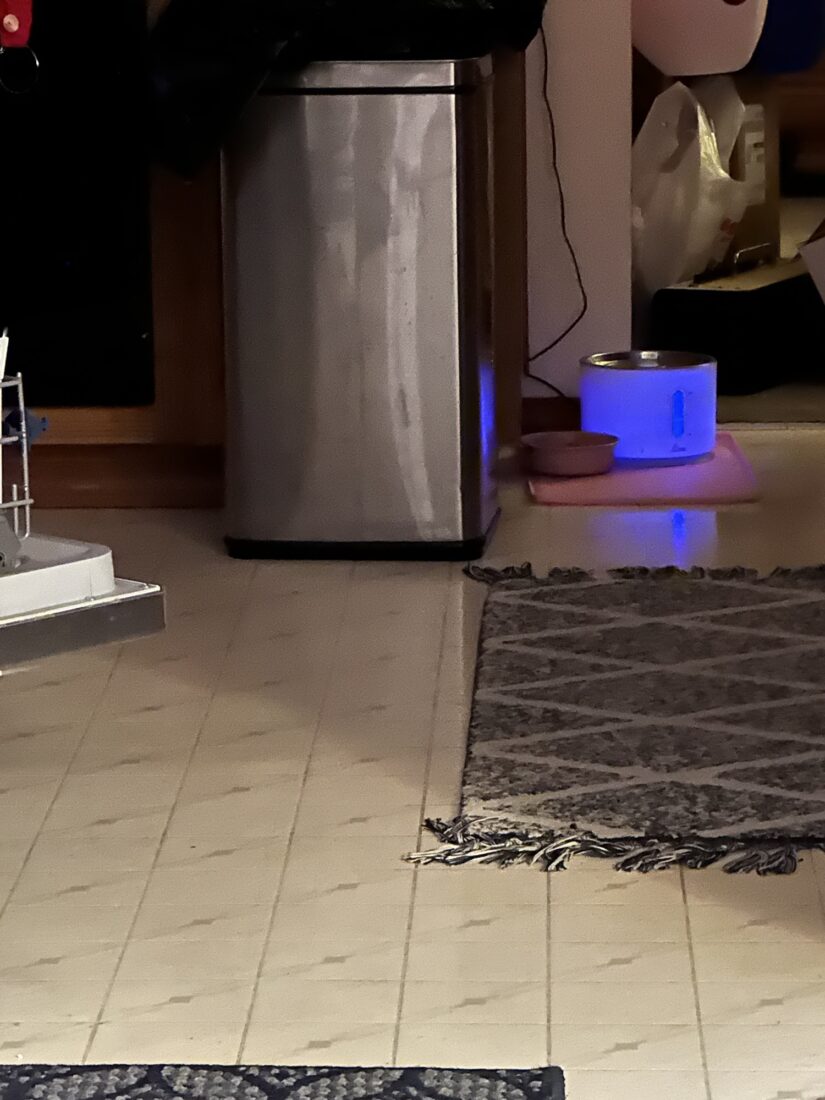 You could eat off that fucker! Even Mika’s eating area is clean! FYI, how did she get food that far up the side of the cabinet?