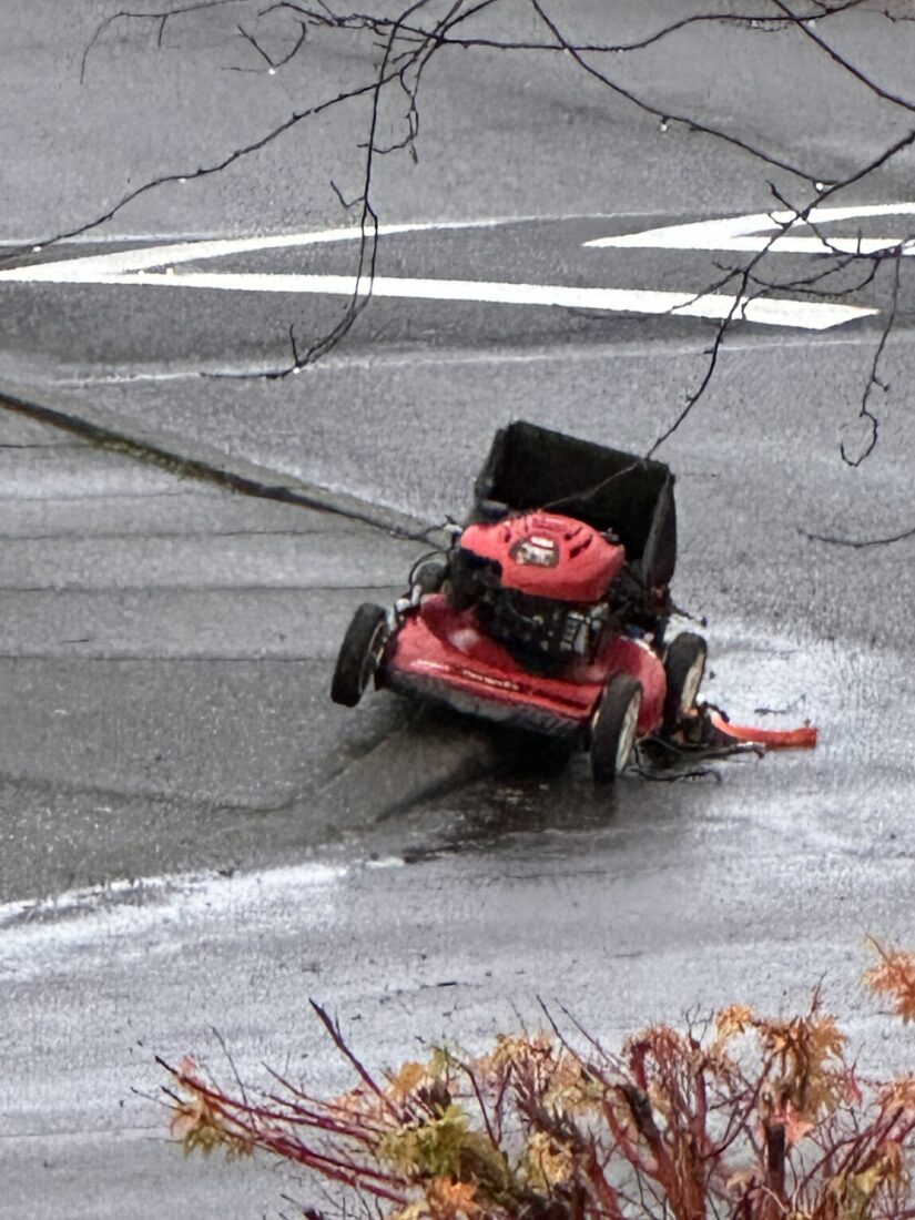 He said some dude in a lawn mowing company truck came back and picked it up! Guess he didn’t tie it down well enough….