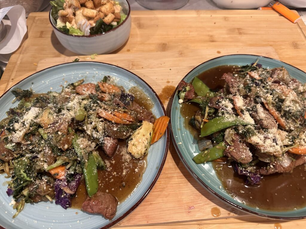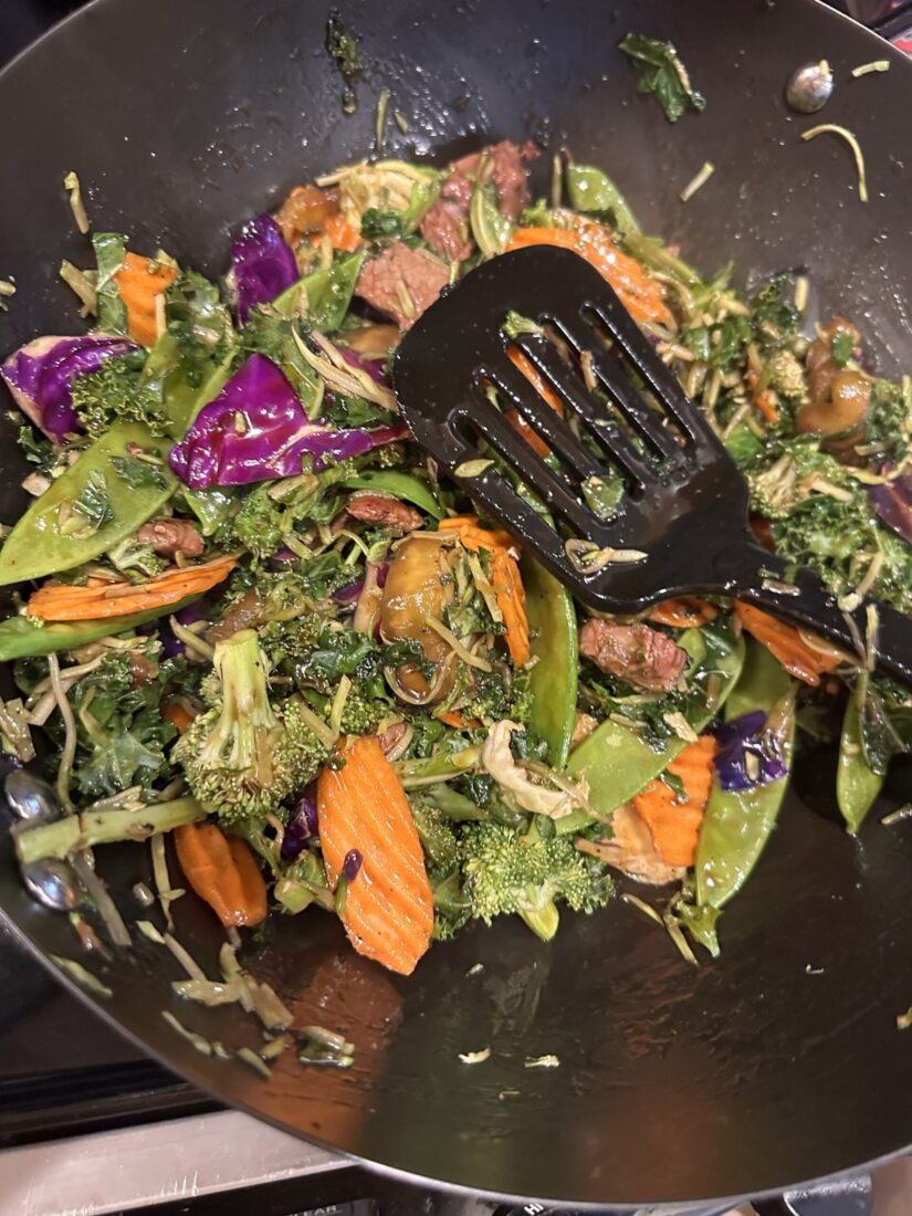 I never thought this would work! Tonight’s dinner is eggplant with ny strip steak in a stir fry base!