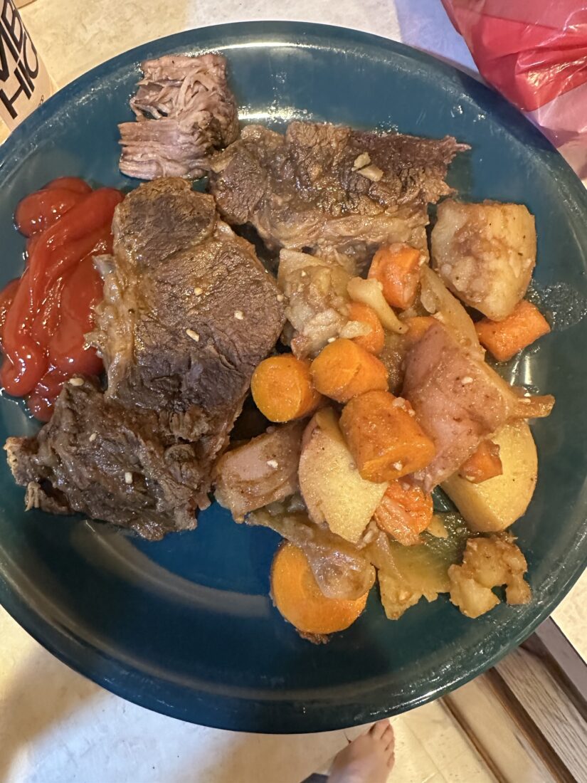 Will be beef pot roast! In beer, whiskey and a tomato based sauce!
