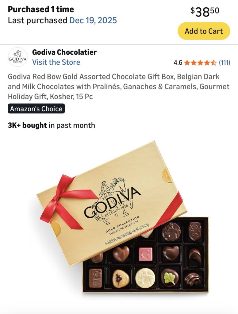 While family outside my local gets a nice box of Godiva chocolate to share amongst each other….. simple, budget friendly and thoughtful!