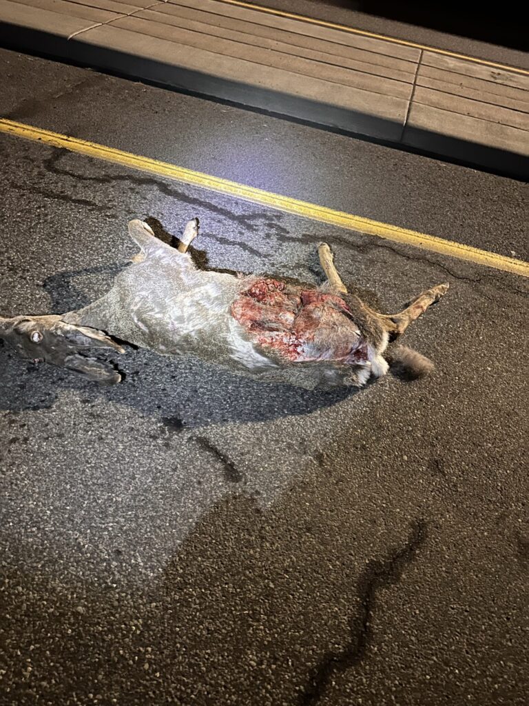 Luckily I was empty cus it’s a fucking gnarly mess when you run over there heads fully loaded! Yet as I’m watching you hear the speed bump thump then I watched this deer spin frantically on its side like a top!